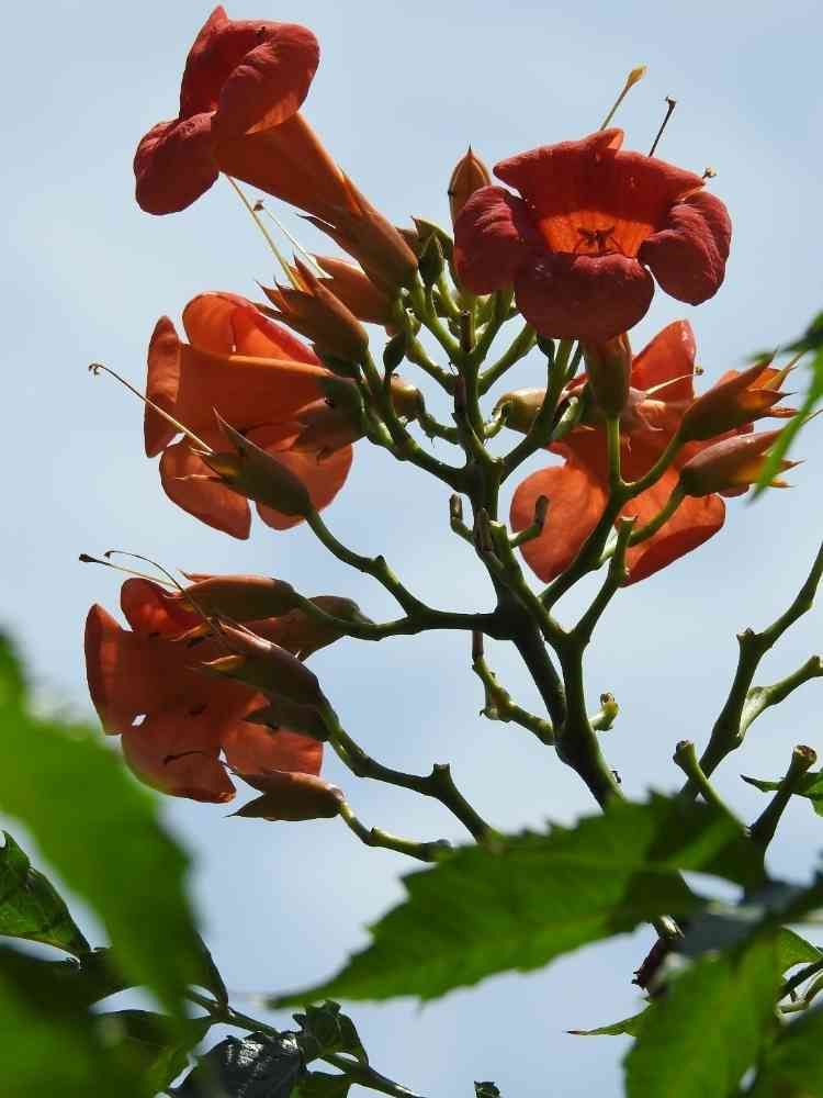 青空に映えるノウゼンカズラの花🌺