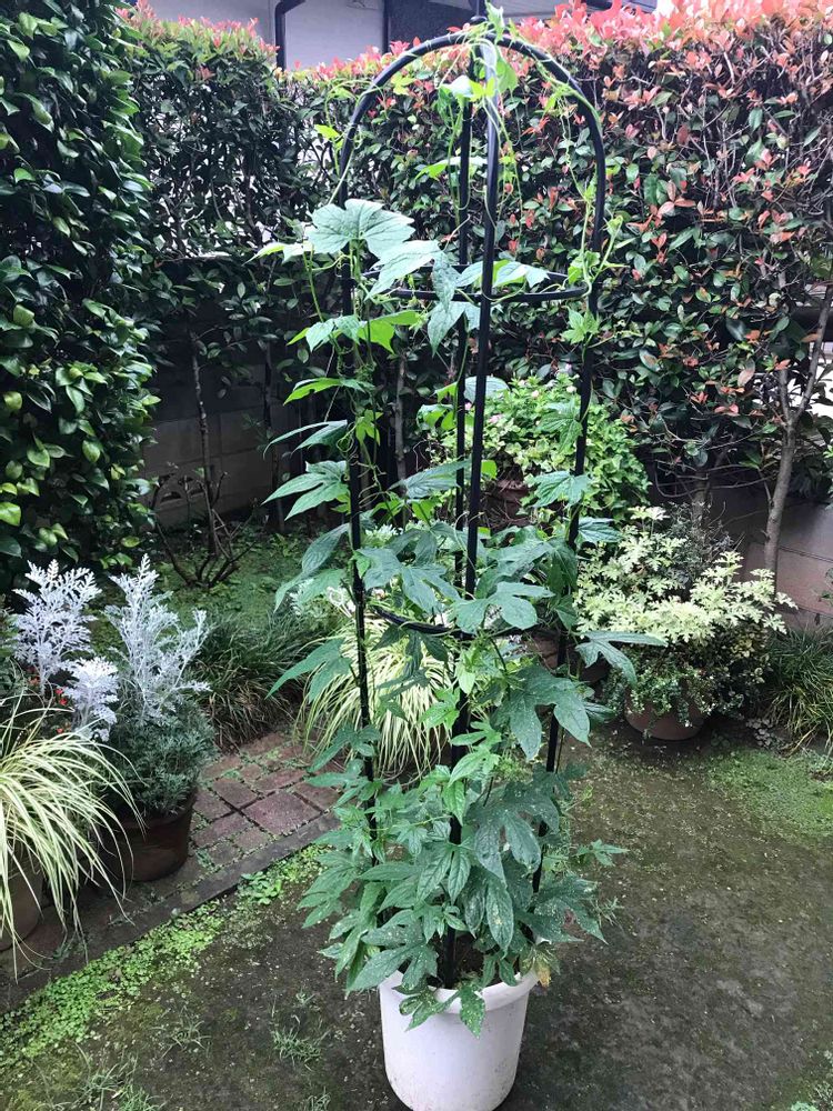 グリーンカーテンしたかったけど 植える場所がなくて 鉢植えに😅