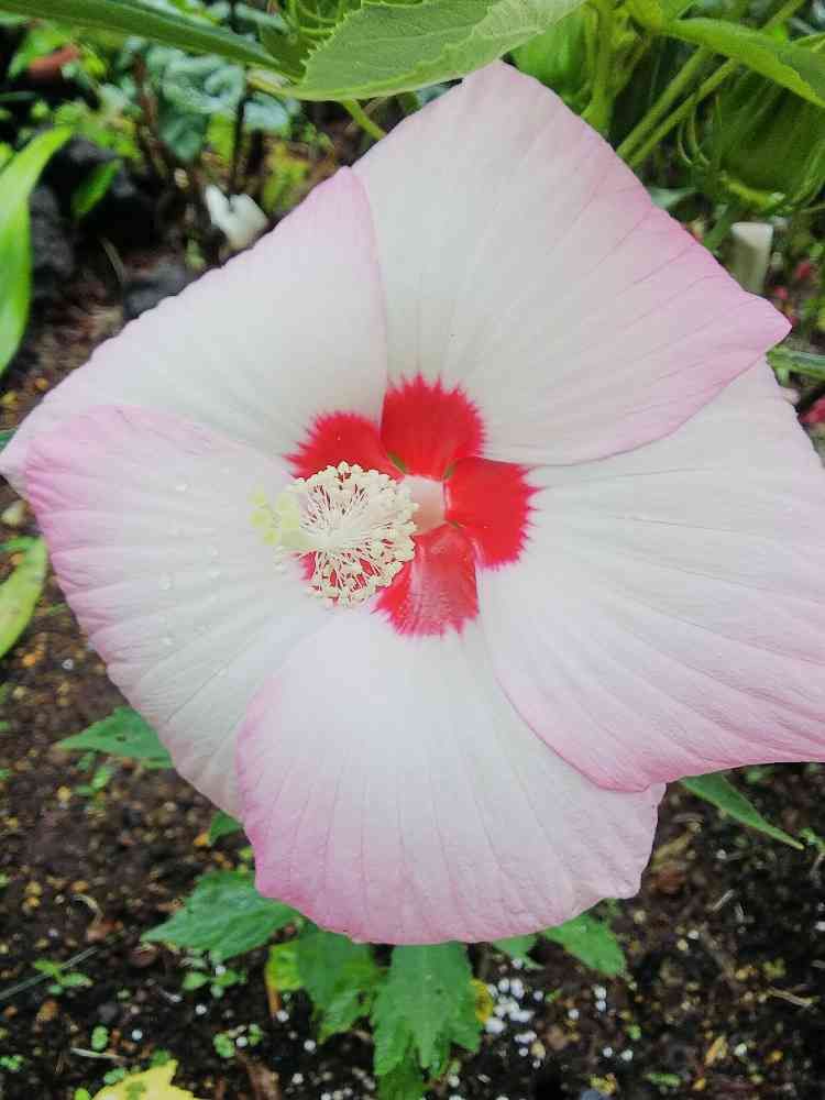 昨日の傘をさしてあげたタイタンビカスが咲いてました😃💕✌️