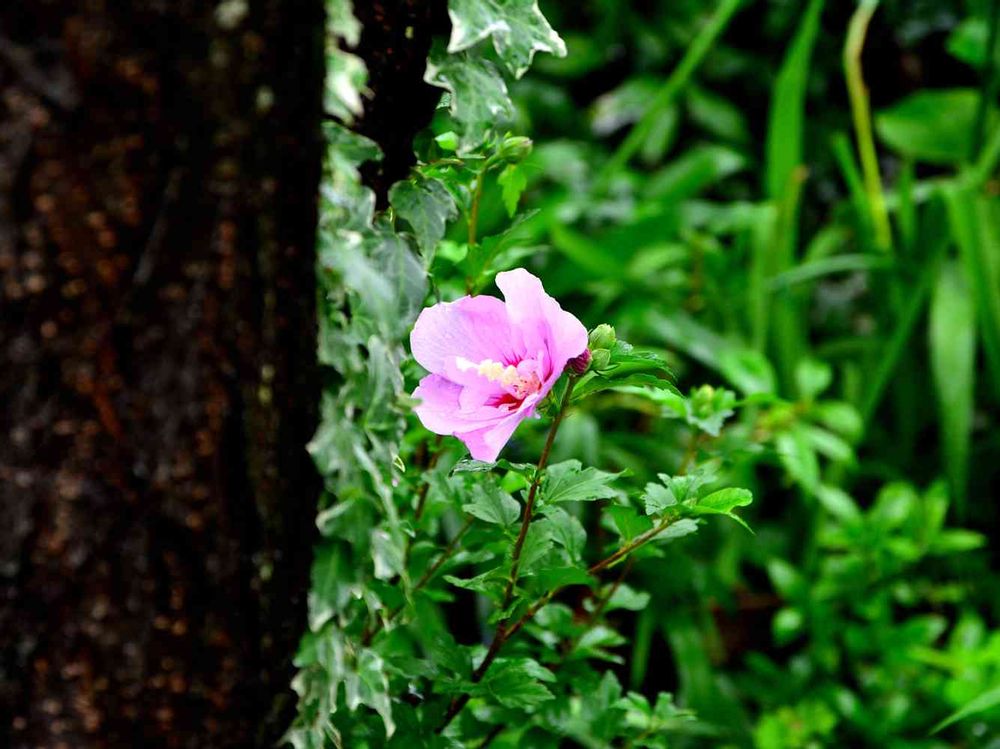 ピンク色のムクゲも一輪開花