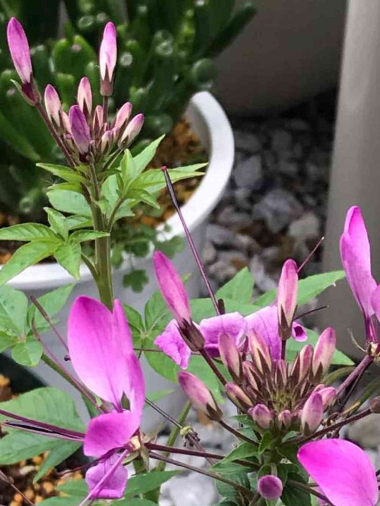 クレオメクリオ^_^強風の中、揺れながらも咲いてます😅