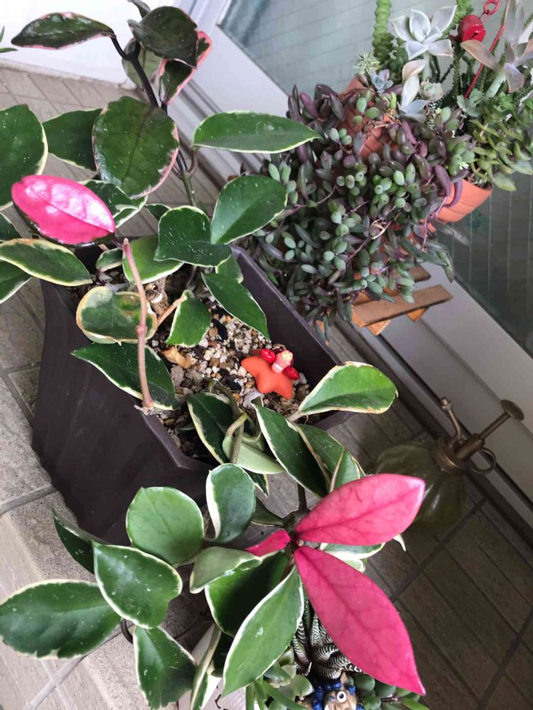 うちのホヤは、お花は咲いた事は無いですが、今年は真っ赤な葉が何枚も出てきました❣️