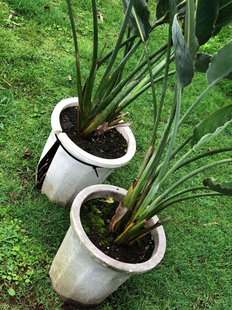 放ったらかしのストレリチア。苔や雑草だらけ…
