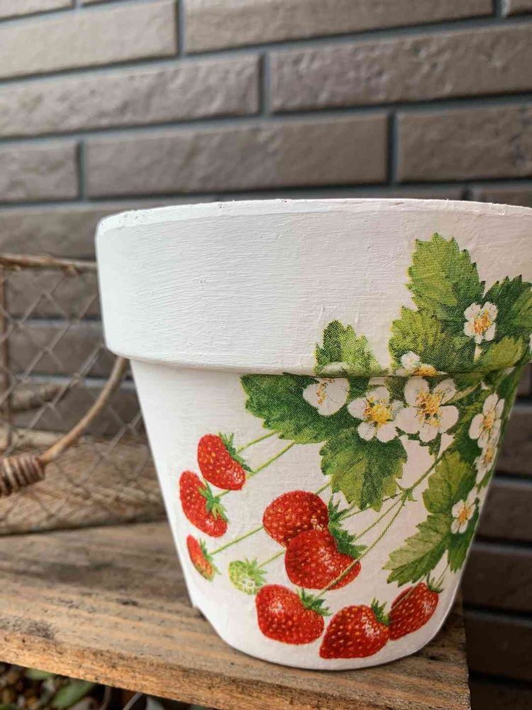 初めて、素焼き鉢にデコパージュしてみました🎶