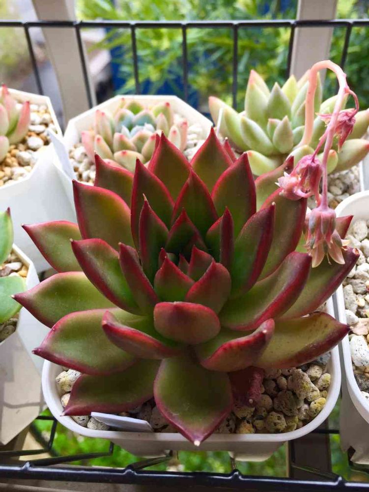 多肉の緑も爽やかで可愛いですが、赤いと華やかになりますね💕
