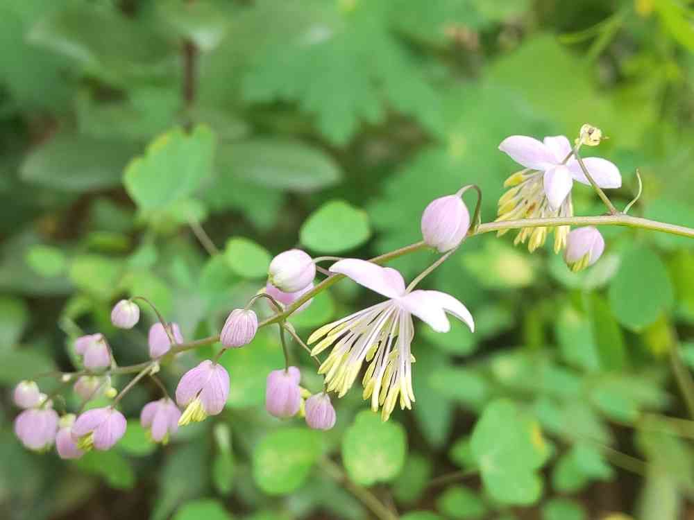 昨年おぎはら植物園から連れて帰ったタリクトラムデラバイの小さな薄紫色のお花がやっと開花しました💕