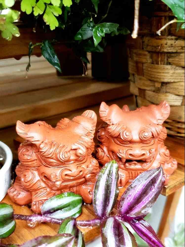 紫オモトとシーサーのコラボ、可愛いですね💕