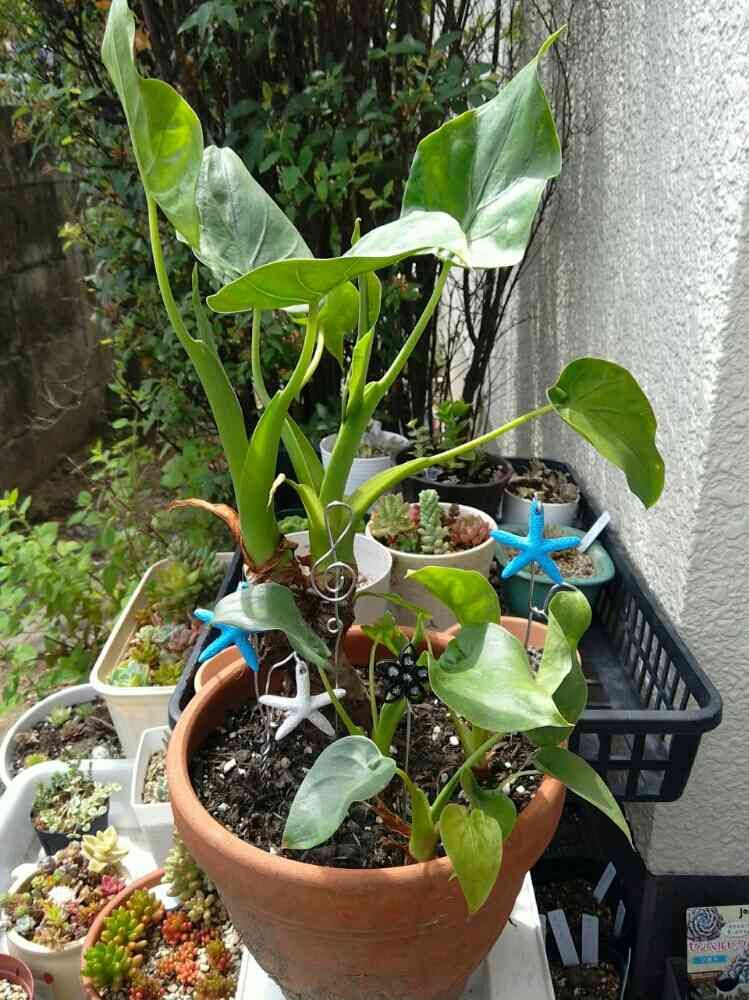 クワズイモ…私は多肉ちゃんにハマる前はガッツリ観葉植物一筋だったのでまだまだ沢山我が家には居ますが、最近はめっきり放置プレーで…