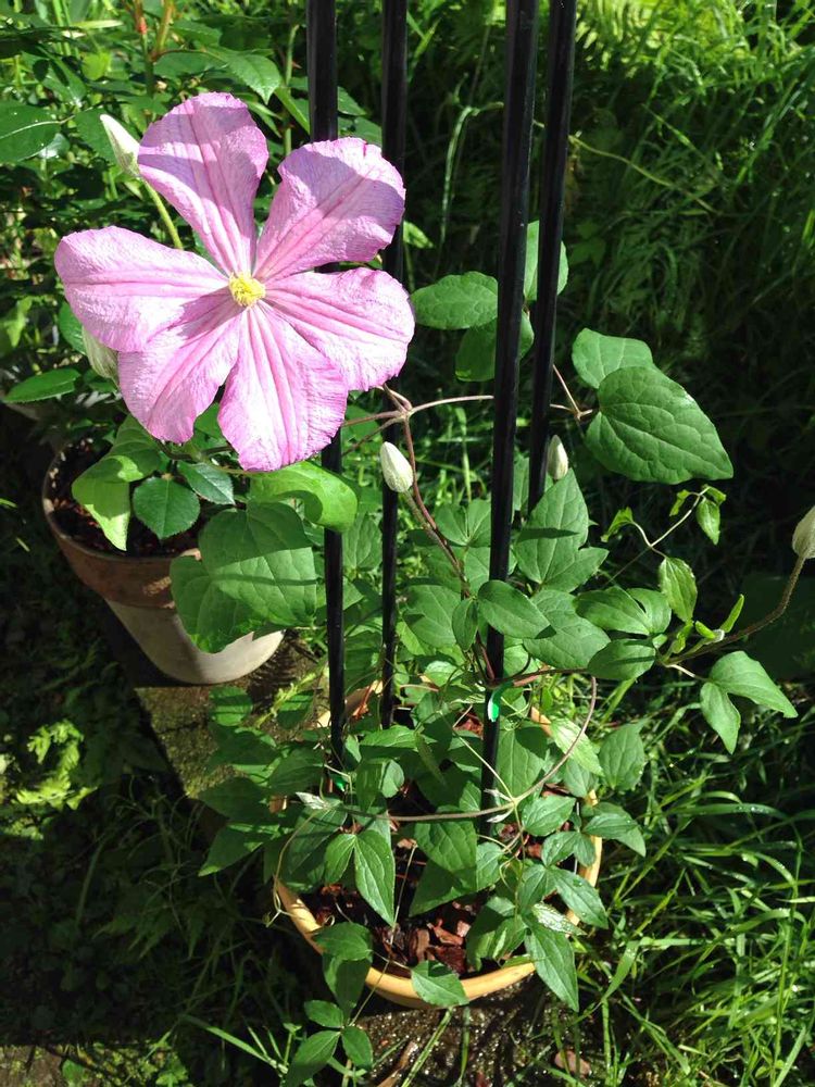 雨避けしていたクレマチス*コンテス ド ブショウとチャッツワース、元の場所に戻しました。