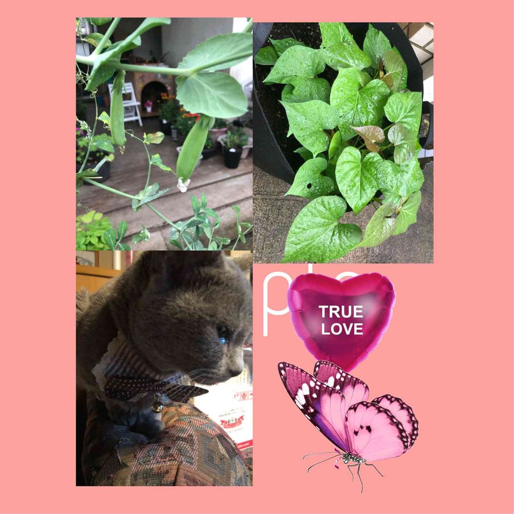 左上→私の背より伸びたスナップエンドウ❣️沢山実がついて毎日お料理に使っています。採れたてはホント美味しいネ❣️