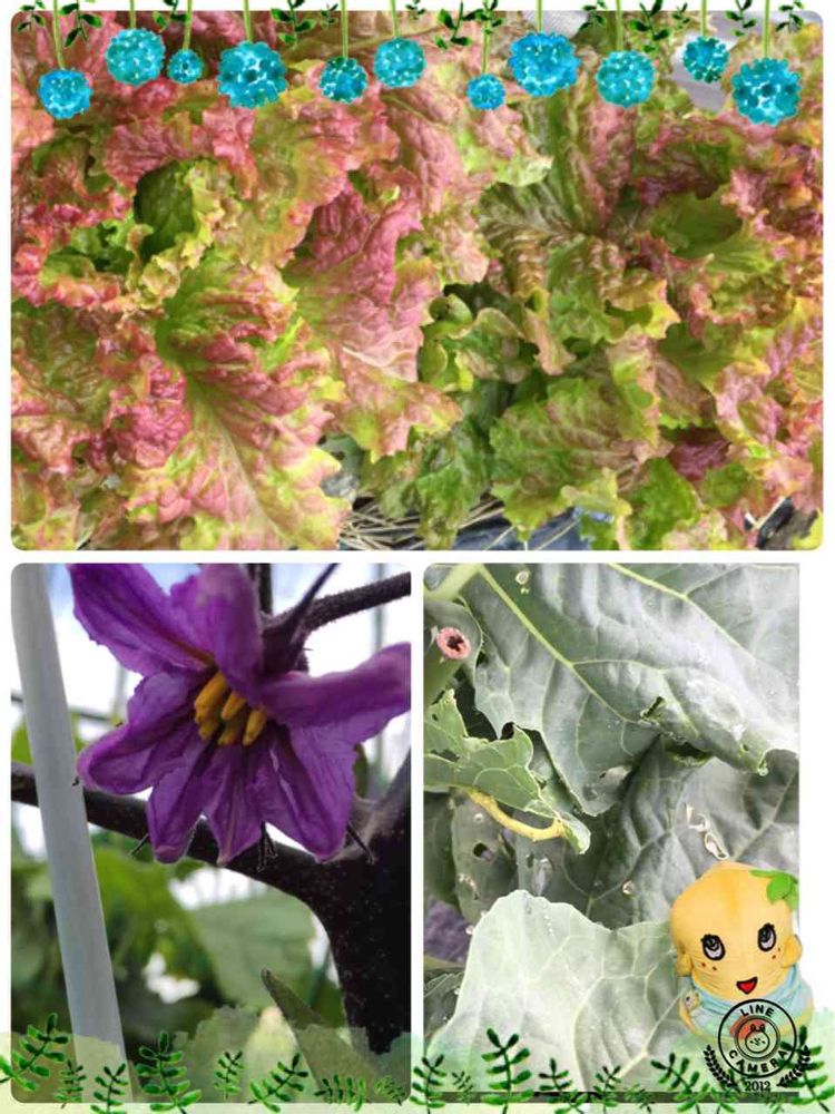 畑を見て見ますと、サニーレタスがモリモリ🌱 苦手なナスも花がついてきた。