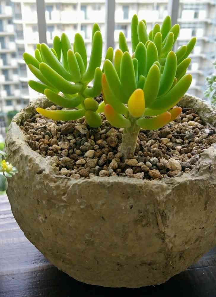 鉢は流木チップ入りとの事でごつごつした風合いがお気に入りの素焼き鉢💕