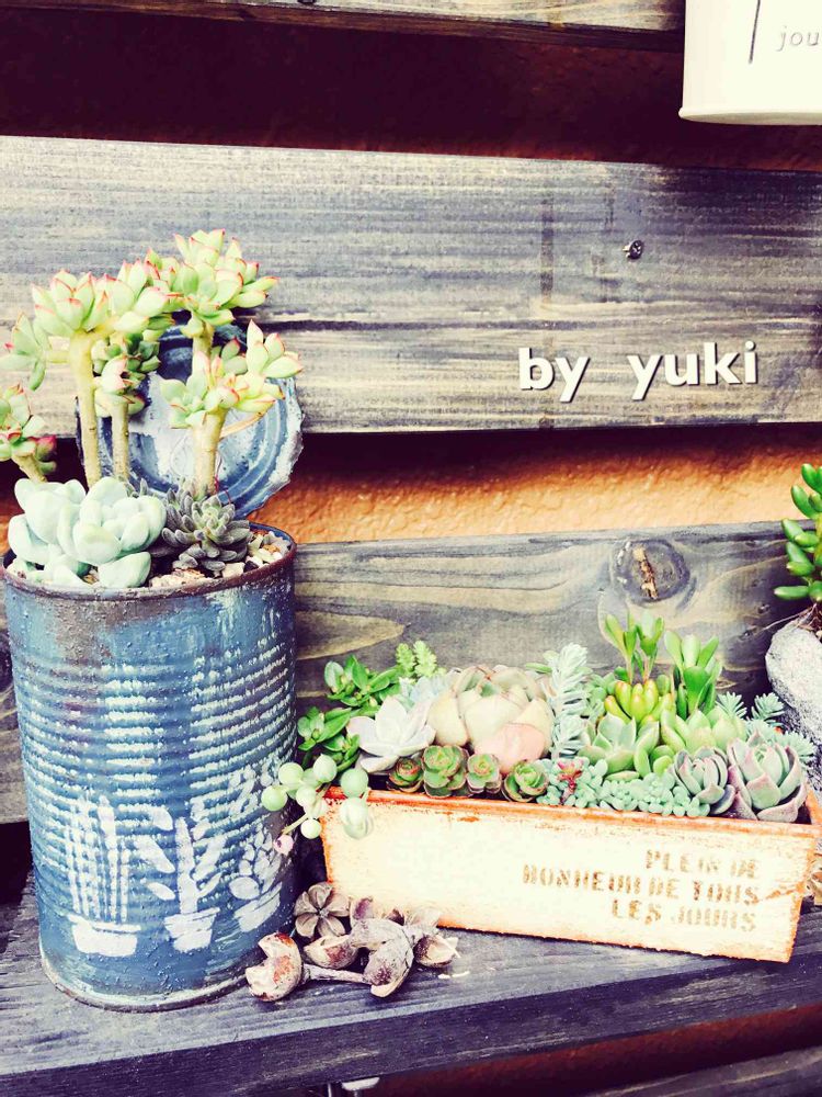 *gghd*さんからの素敵便のリメ缶に寄せ植え( *ˊᵕˋ)✩︎‧₊