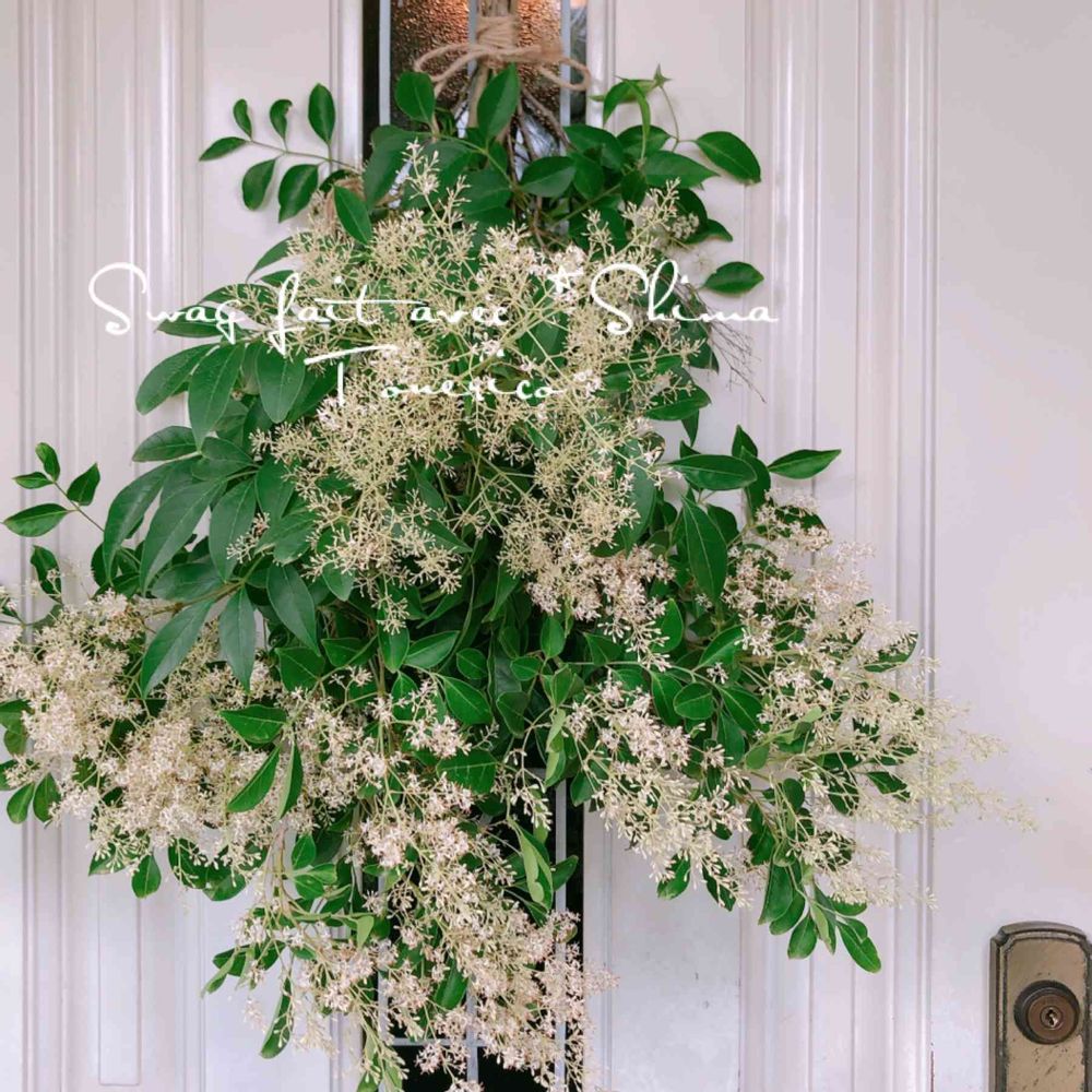 お久しぶりですね!ちょうど投稿が上下に並びましたね!シマトネリコは、花が咲くのですね!スワッグのようで、とても素敵❣️いつもセンスの良い花あしらいに、癒されていますよ💕💕