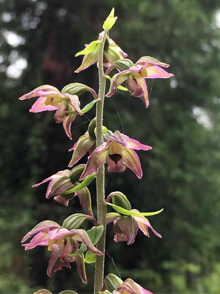 茎が直立し、薄ピンク色の花は地味ながら、品があった。普通は緑色の花らしいが、調べたらピンクも散見できた。