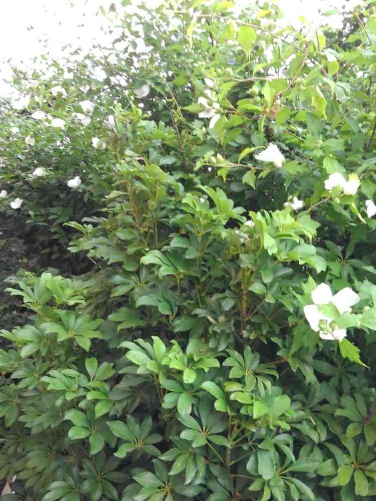 大きなムクゲの木、風雨に☔負けないで〜花を落とさないでと💖祈ります❗