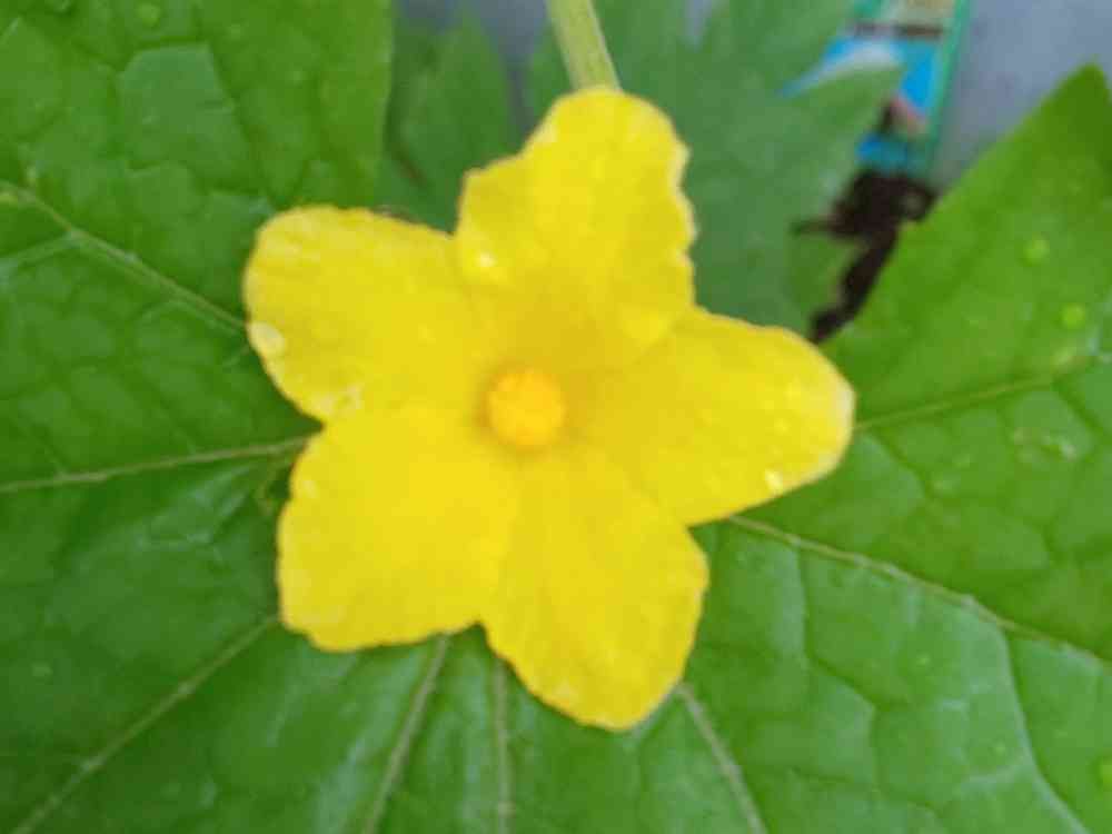 白ゴーヤの黄色ハート💛の花が咲きました。可愛いです。
