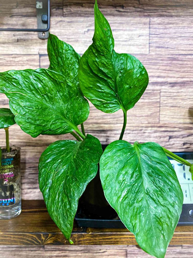 大きな葉にボコボコした葉がポトスらしくないワイルドな苗。ヘゴに仕立てて葉を大きくしたらめちゃくちゃかっこいいかも。やってみようかな