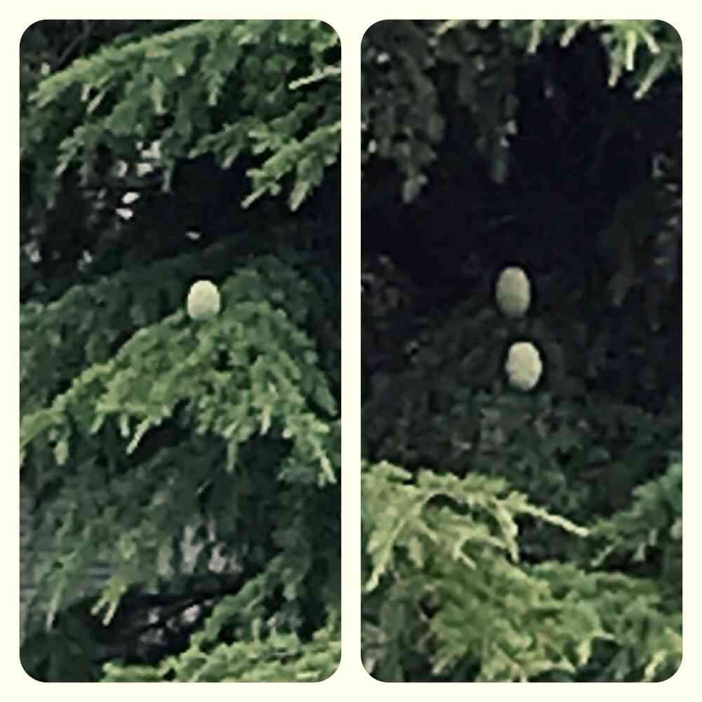 高い木なので近くで見れないけど、たぶん松ぼっくりみたいな感じかな〜?