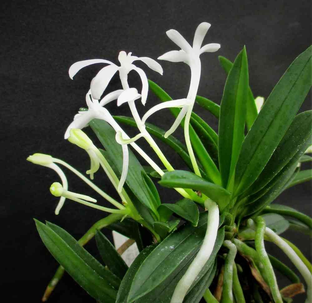 今年の花は段咲きになりました😆真ん中の花です😉距がなくなり、何枚か花弁が花茎について段咲きとなっています☺️購入したラン店では『段咲きで仕入れたが段咲きにはならなかった』といってました😉