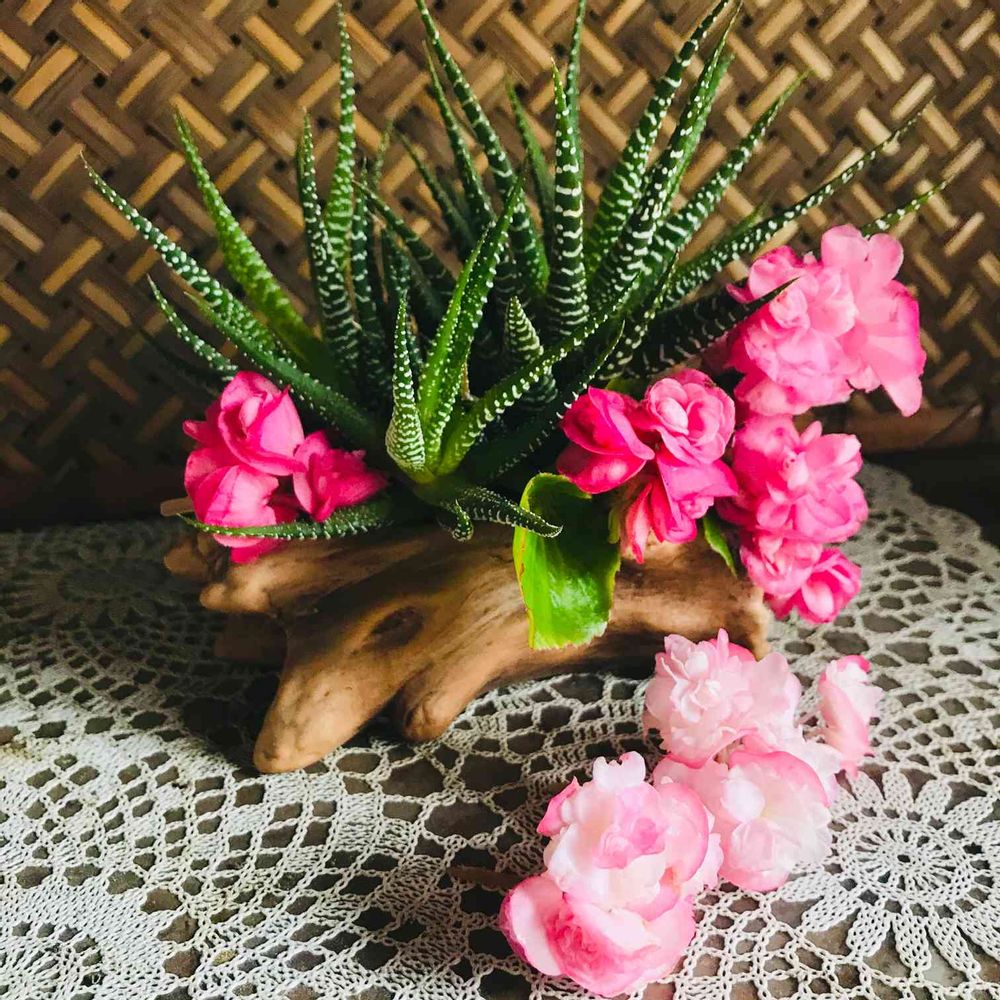 緑の多肉とピンクのお花のコラボで💚💗