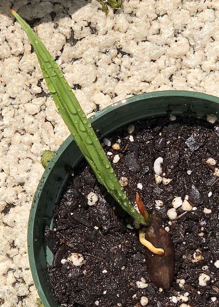 こちらのデーツはドライフルーツの種です。最近は気に入って食べていたので、種がたくさんありました。他の幾つかの種は地植えしてみましたが、何も出て来ません。コメントありがとうございます。