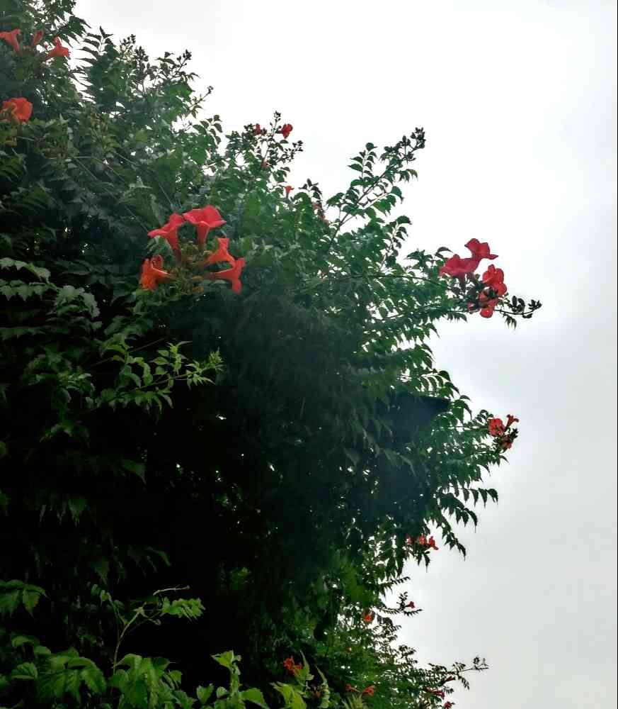 花の形がトランペットに似ていることから、英語では、Trumpet Vine