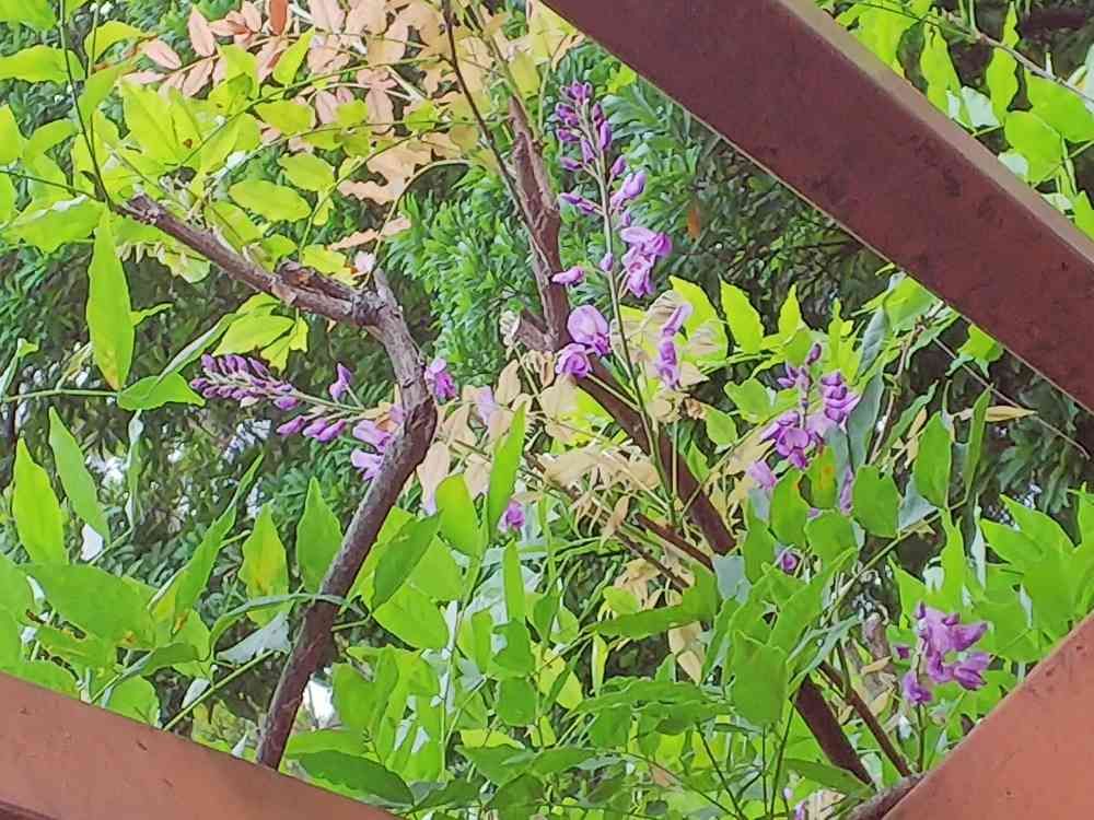 なにげなく上を見ると…咲いてる。藤の花の季節は終わりですよね💦