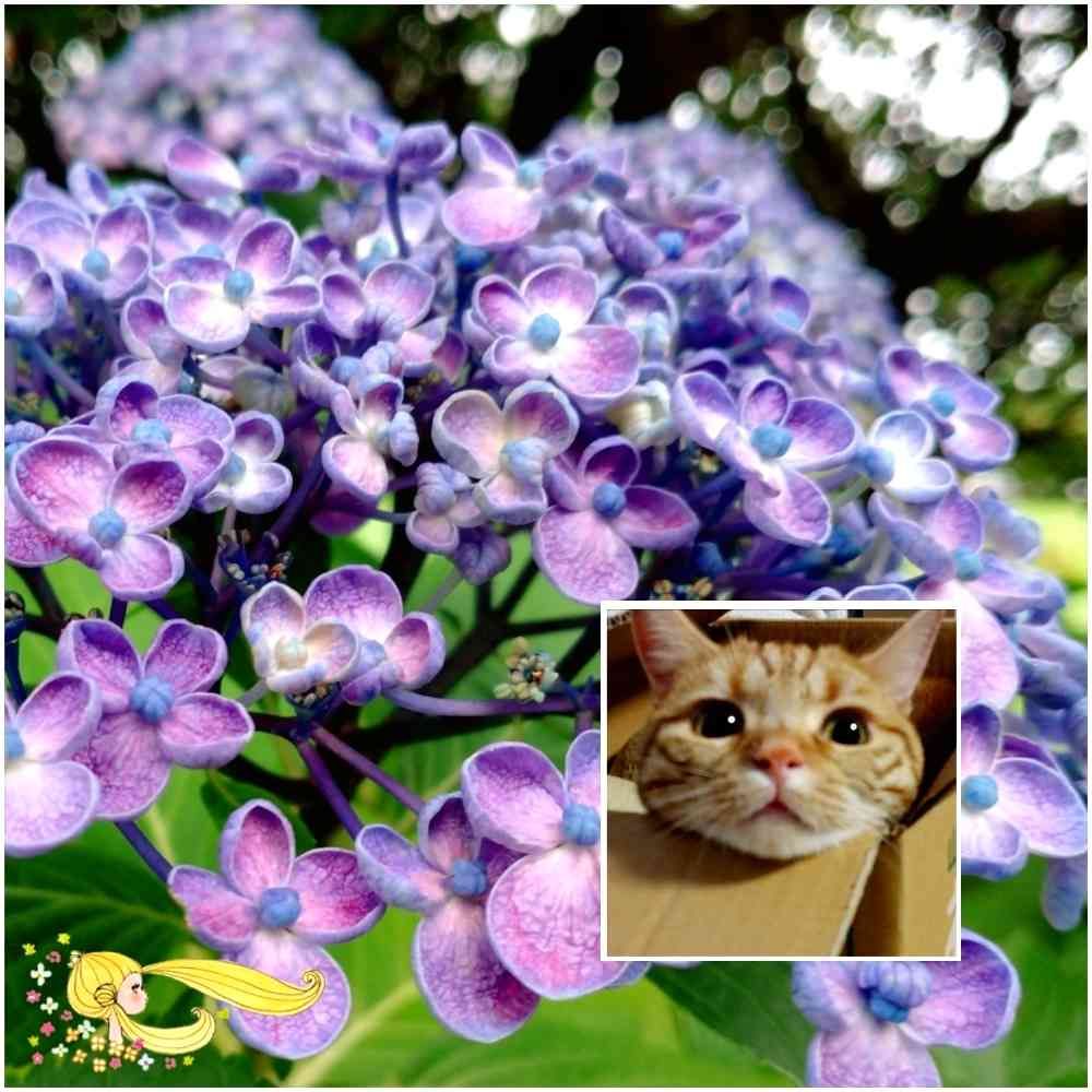 イイネありがとうございます🙆♀️このアジサイ可愛くて好きです🙌ネコちゃんもカワイイ🐱