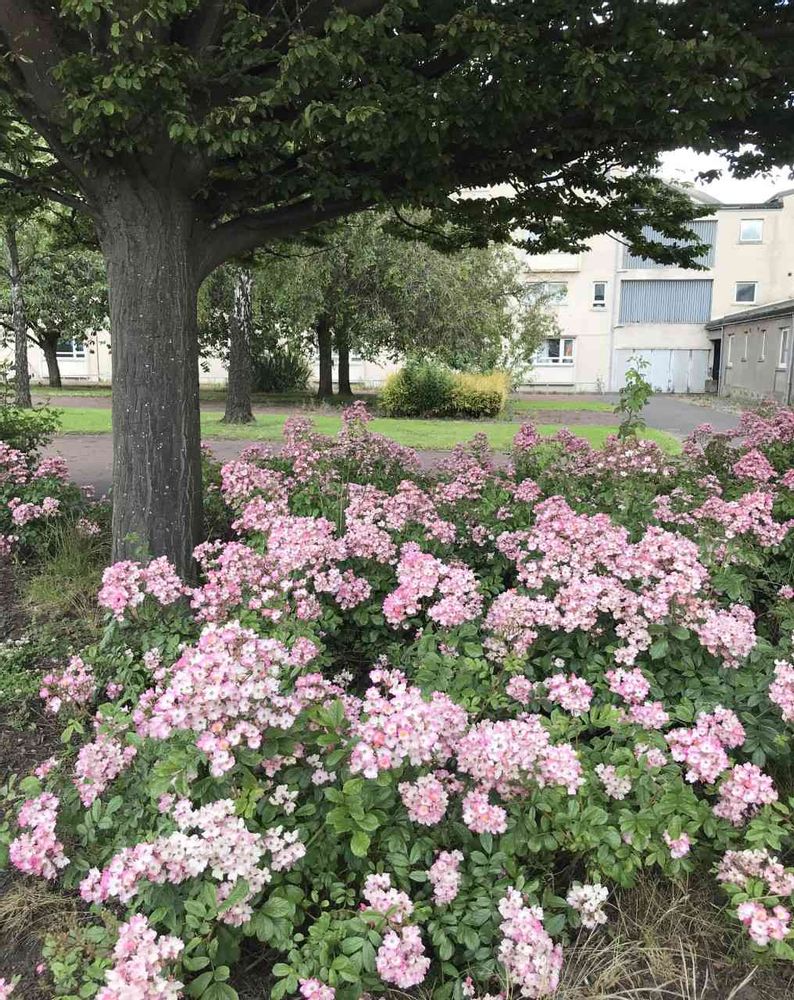スコットランド自宅近くをお散歩中に、(日本でいうところの)公団住宅の公共スペースに植えられていました。満開の時期を少し過ぎてしまっているのですが、ピンクの花がいっぱい咲いてます。野ばら(ノイバラ)の一種でイヌバラ(ドッグローズ)です〜(アップの写真を別に投稿します~)