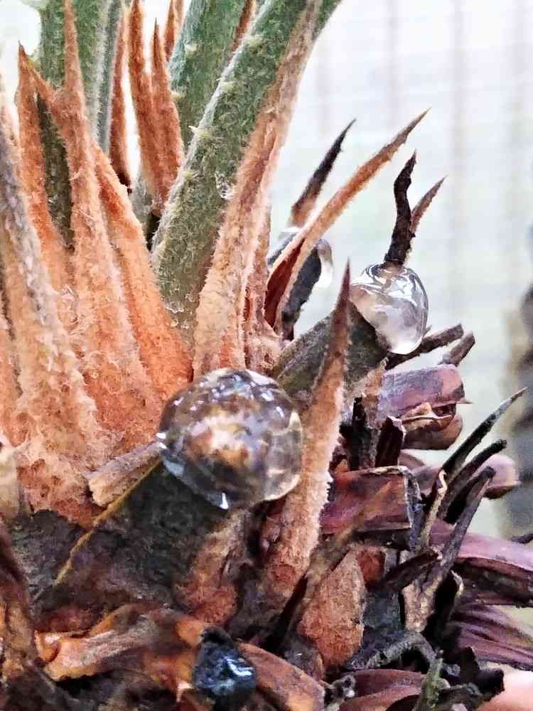 ソテツを見に行ったら、葉っぱの切り口からなんか出てました😓