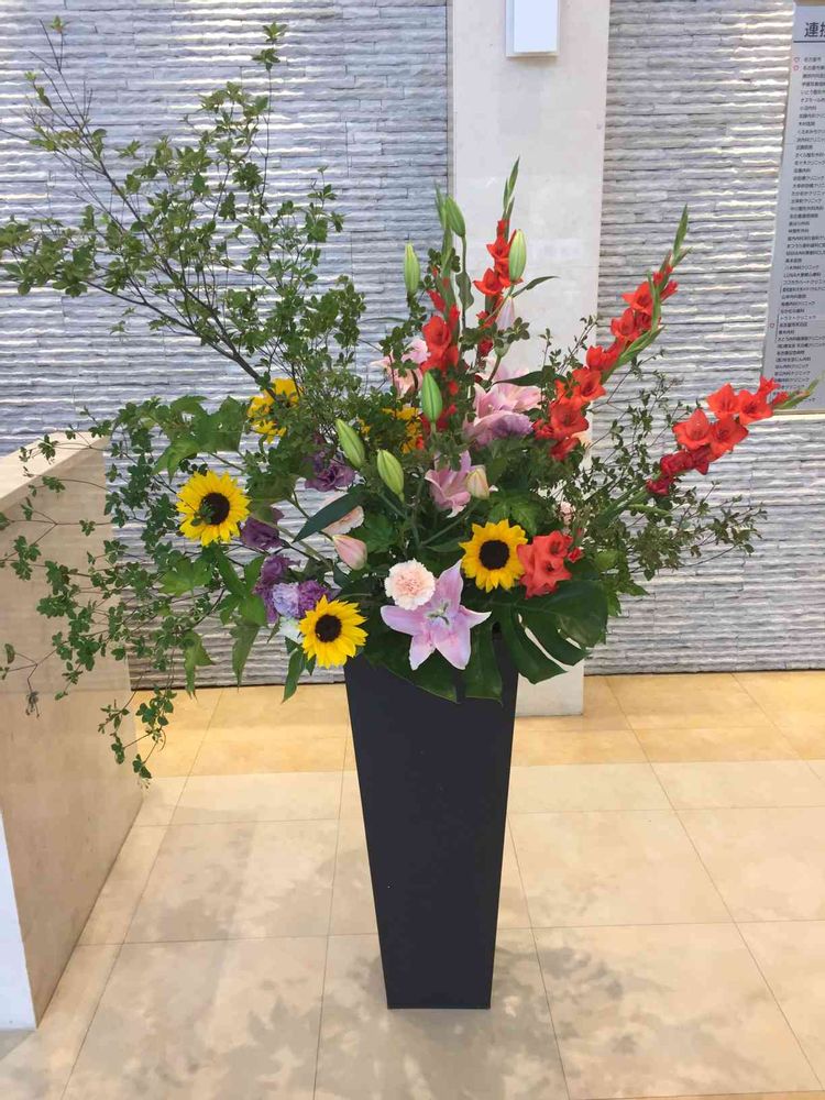 毎週日曜日に変わる病院の正面玄関のお花。