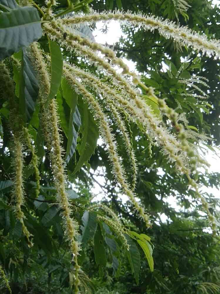 白い穂のようなのは、おしべで、それがない雌花が、同じ木についています😊😊😊