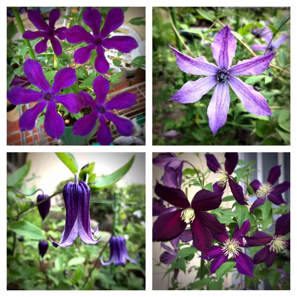 今年初めて育てた4種類の紫系クレマチス達が元気に咲きました✨