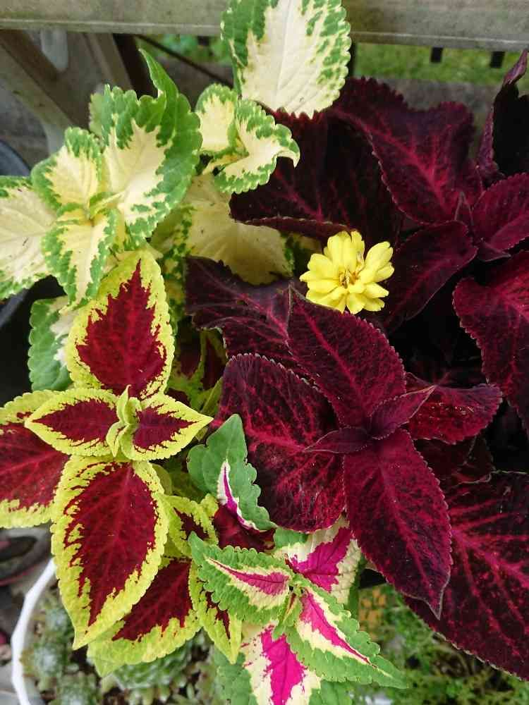 今朝は涼しい位です😰コリウスが鮮やかでステキ❗️余り大きくさせたくないので、鉢で育てるつもりですが?剪定が大変そう😅