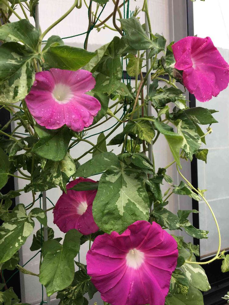 あたしの朝顔は、苗に何か悪い原因があるのか、いつもどこかの花弁が切れてるか、しぼんでいるかだから、タイミングよく撮れた試しがないよ〜😭