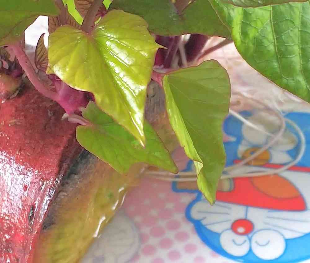 こんばんは。こんなかわいい葉っぱがたくさんついて、お芋がなるんですね。楽しみです。