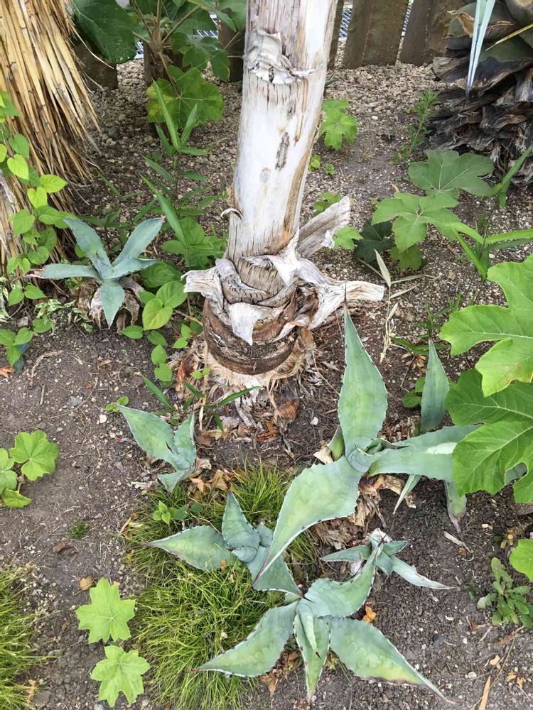 先ほどのフラワーセンターマツオ駐車場のアガベ朽ちた花茎の株元が こちらでございます。