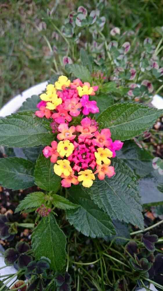 ランタナ黄色、ピンク色と可愛いですのね〜💕花後に青色の実がで来た様な?
