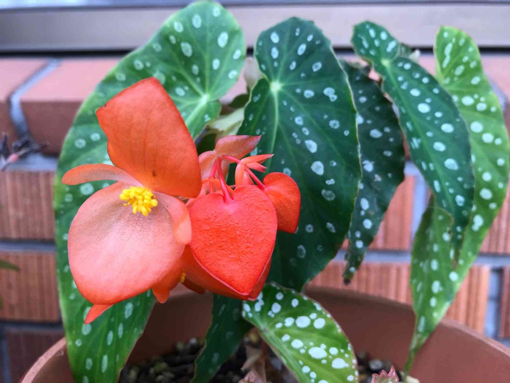 オレンジの木立ちベゴニアもハート🧡の花が開いてます!