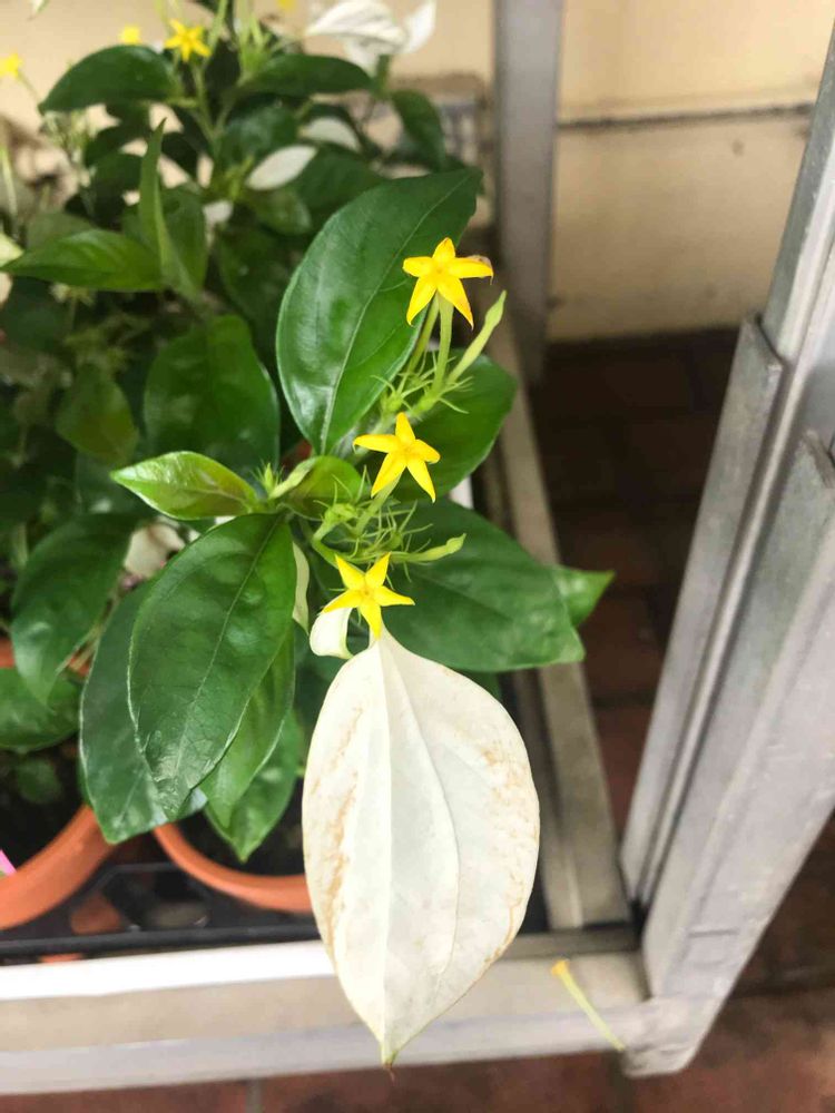 白い葉っぱと黄色い花が目についたので、写真に撮りました。