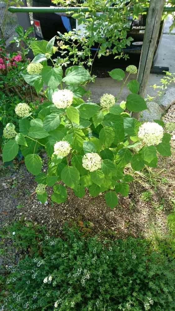 3年目のアナベル。ぐんぐん成長中(^o^)昨年は3つしか花が付かなかったけれど、今年は12輪も!でも、昨年より花の大きさは小振りかも…。