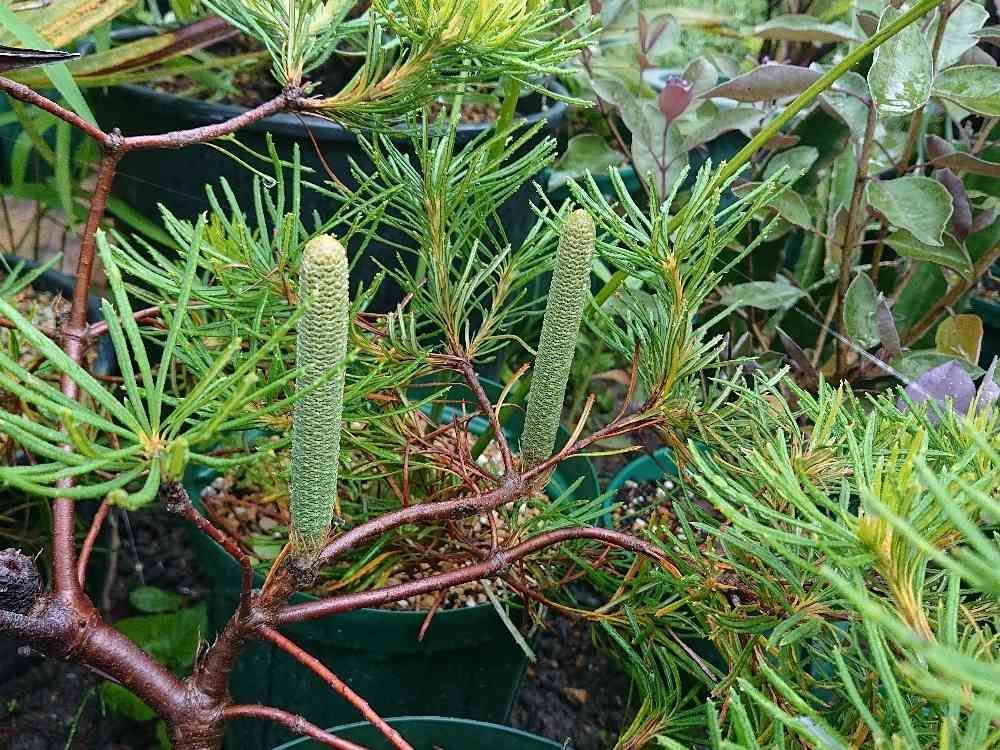 また同じバンクシア属のヒースバンクシアやコーストバンクシア、スワンプバンクシアなど、葉形状や葉色の異なる種と比較対象的に合わせて植えてみても差が際立って面白いです。