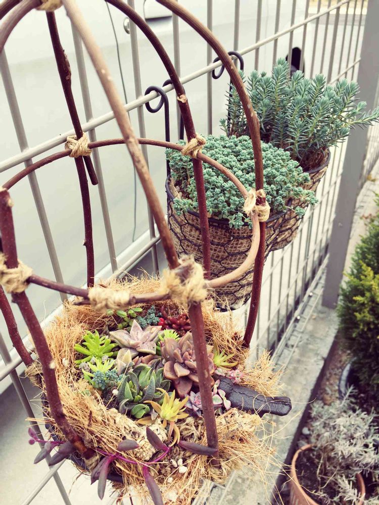 この鳥かご、かれこれ10年くらい前に作ったのが、納戸を片付けてたらひょっこり出てきたので、少しアレンジして多肉ちゃん様にしました(◆*'v`*)お気に入りです♡