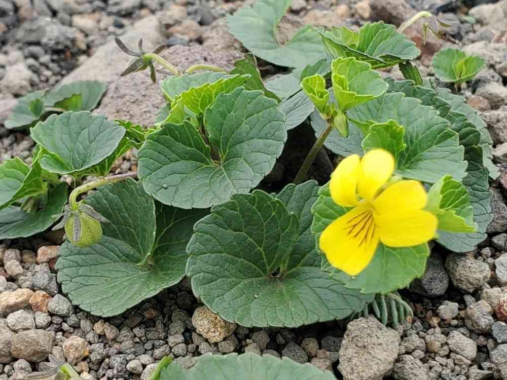 秋田駒ヶ岳を初め、東北地方の高山帯の砂ガレキ地に生える多年草。葉に光沢がある。環境条件の厳しい砂ガレキにへばりつくように低く咲く。