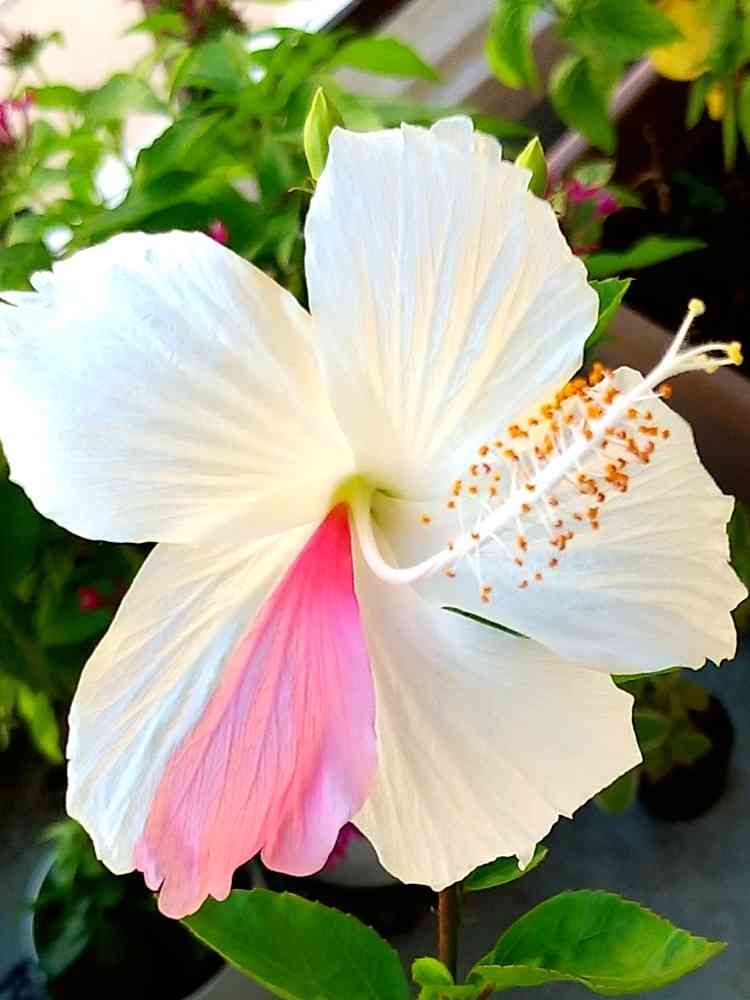 とうとう白のハイビスカス🌺お家に参りましたー!🌺🌺🌺しかもこのお花はピンクがー!たまに咲くそうです!(o^^o)幸せを呼ぶハイビスカス🌺