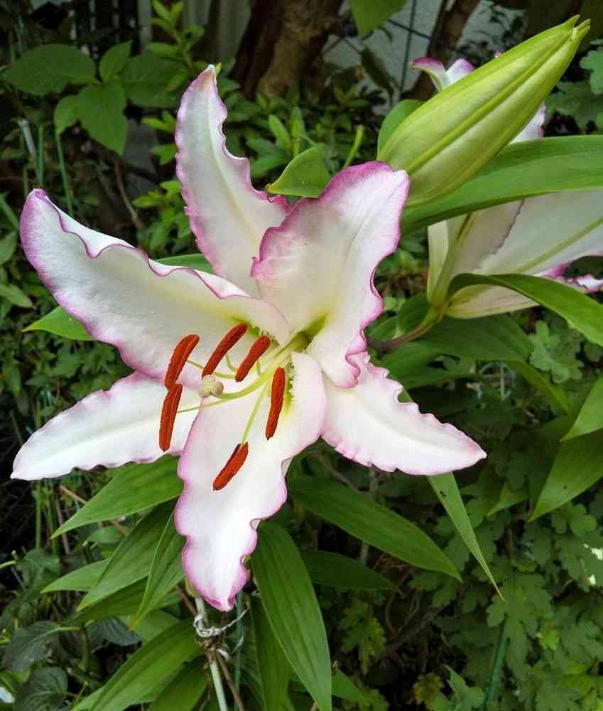 ピンクの縁取りの白いユリの花、素敵です✨✨