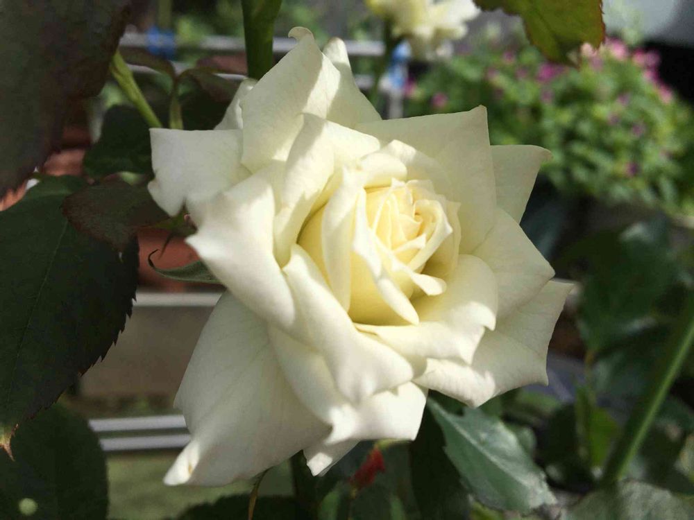 このホワイトのバラは今年5/30にうちにきた新入りさんのバラです😊