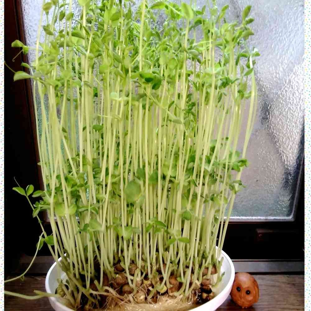 二番煎じの豆苗がスクスク伸びて 食べ頃😋