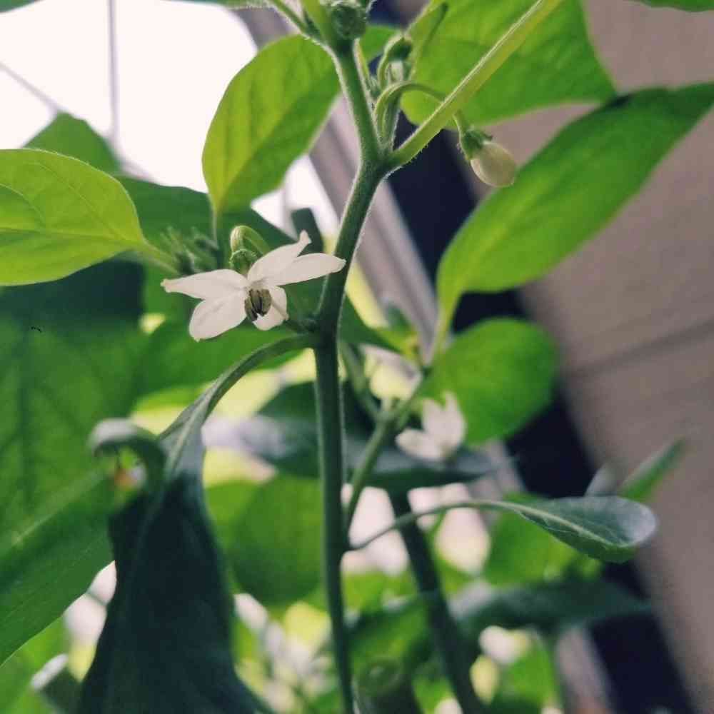 青唐辛子咲きましたー!!!日照不足でどうなるかとハラハラしていましたが、開花!